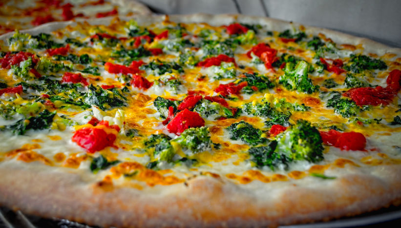 Tomato Sauce: A rich, tangy tomato sauce spread evenly over the crust. Imported San Marzano Tomatoes, Fresh Basil and seasonings.